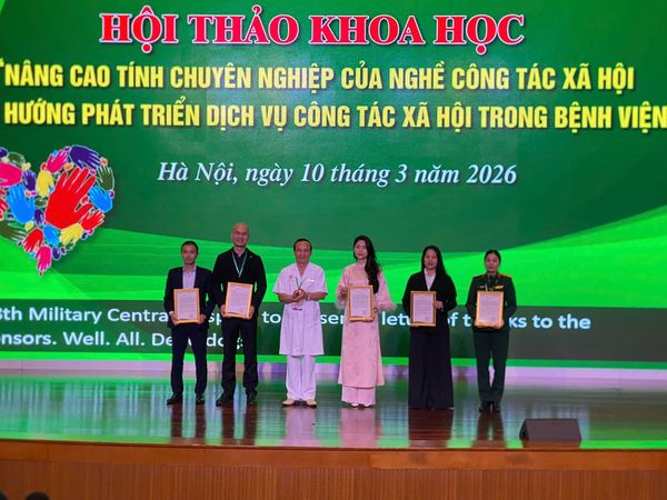 Ngày 10/03/2026, tại Hội trường 1 – Tầng 9, Cụm công trình trung tâm – Bệnh viện Trung ương Quân đội 108, đã diễn ra Hội thảo khoa học với chủ đề: “Nâng cao tính chuyên nghiệp của nghề Công tác xã hội – Định hướng phát triển dịch vụ Công tác xã hội trong bệnh viện”.